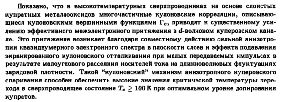 Показано, что в высокотемпературных сверхпроводниках на основе слоистых купратных металлооксидов многочастичные кулоновские корреляции, описывающиеся кулоновскими вершинными функциями Гс, приводят к существенному усилению эффективного межэлектронного притяжения в d-волновом куперовском канале. Это притяжение возникает благодаря совместному действию сильной анизотропии квазидвумерного электронного спектра в плоскости слоев и эффекта подавления экранированного кулоновского отталкивания при малых передаваемых импульсах в результате малоуглового рассеяния носителей тока на длинноволновых флуктуациях зарядовой плотности. Такой "кулоновский" механизм анизотропного куперовского спаривания способен обеспечить высокие значения критической температуры перехода в сверхпроводящее состояние Тс > 100 К при оптимальном уровне допирования купратов.