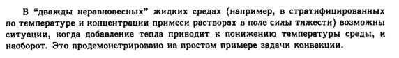 В "дважды неравновесных" жидких средах (например, в стратифицированных по температуре и концентрации примеси растворах в поле силы тяжести) возможны ситуации, когда добавление тепла приводит к понижению температуры среды, и наоборот. Это продемонстрировано на простом примере задачи конвекции.