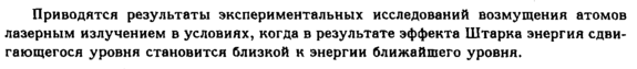 Приводятся результаты экспериментальных исследований возмущения атомов лазерным излучением в условиях, когда в результате эффекта Штарка энергия сдвигающегося уровня становится близкой к энергии ближайшего уровня.