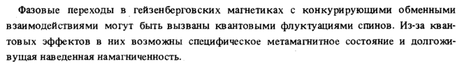 Фазовые переходы в гейзенберговских магнетиках с конкурирующими обменными взаимодействиями могут быть вызваны квантовыми флуктуациями спинов. Из-за квантовых эффектов в них возможны специфическое метамагнитное состояние и долго живущая наведенная намагниченность.