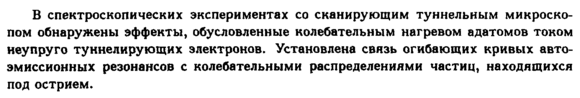 В спектроскопических экспериментах со сканирующим туннельным микроскопом обнаружены эффекты, обусловленные колебательным нагревом адатомов током неупруго туннелирующих электронов. Установлена связь огибающих кривых автоэмиссионных резонансов с колебательными распределениями частиц, находящихся под острием.