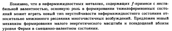 Показано, что в нефермижидкостных металлах, содержащих /-примеси с нестабильной валентностью, основную роль в формировании тяжелофермионных состояний может играть новый тип неустойчивости нефермижидкостного состояния относительно межзонного рассеяния многочастичных возбуждений. Предложен новый механизм формирования малого энергетического масштаба и псевдощелей вблизи уровня Ферми в смешанно-валентном состоянии.