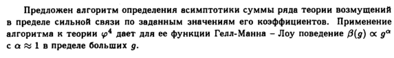 Предложен алгоритм определения асимптотики суммы ряда теории возмущений в пределе сильной связи по заданным значениям его коэффициентов. Применение алгоритма к теории