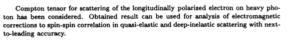 Compton tensor for scattering of the longitudinally polarized electron on heavy photon has been considered. Obtained result can be used for analysis of electromagnetic corrections to spin-spin correlation in quasi-elastic and deep-inelastic scattering with next-to-leading accuracy.