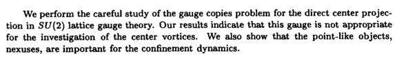 We perform the careful study of the gauge copies problem for the direct center projection in SU(2) lattice gauge theory. Our results indicate that this gauge is not appropriate for the investigation of the center vortices. We also show that the point-like objects, nexuses, are important for the confinement dynamics.