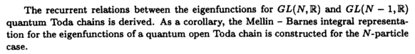 The recurrent relations between the eigenfunctions for GL(N,R) and GL(N 1,R) quantum Toda chains is derived. As a corollary, the Mellin Barnes integral representation for the eigenfunctions of a quantum open Toda chain is constructed for the AT-particle case.
