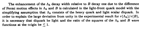 The enhancement of the decay width relative to В decay one due to the difference of Fermi motion effects in Λ& and В is calculated in the light-front quark model with the simplifying assumption that consists of the heavy quark and light scalar diquark. In order to explain the large deviation from unity in the experimental result for τ(Λ&)/τ(#), it is necessary that diquark be light and the ratio of the squares of the and В wave functions at the origin be < 1.