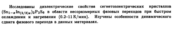 Исследованы диэлектрические свойства сегнетоэлектрических кристаллов (Sni_a.In(2/3)a,)2P2Se в области несоразмерных фазовых переходов при быстром охлаждении и нагревании (0.2-11 К/мин). Изучены особенности динамического сдвига фазового перехода в данных материалах.