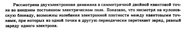 Рассмотрена двухэлектронная динамика в симметричной двойной квантовой точке во внешнем постоянном электрическом поле. Показано, что несмотря на кулонов-скую блокаду, возможны колебания электронной плотности между квантовыми точками, при которых из одной точки в другую периодически перетекает заряд, равный заряду одного электрона.