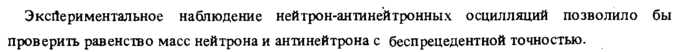 Экспериментальное наблюдение нейтрон-антинейтронных осцилляции позволило бы проверить равенство масс нейтрона и антинейтрона с беспрецедентной точностью.