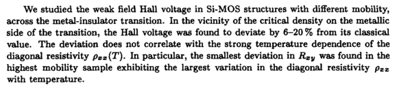 We studied the weak field Hall voltage in Si-MOS structures with different mobility, across the metal-insulator transition. In the vicinity of the critical density on the metallic side of the transition, the Hall voltage was found to deviate by 6-20 % from its classical value. The deviation does not correlate with the strong temperature dependence of the diagonal resistivity pxx(T). In particular, the smallest deviation in Rxy was found in the highest mobility sample exhibiting the largest variation in the diagonal resistivity pxx with temperature.
