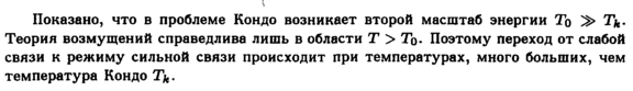Показано, что в проблеме Кондо возникает второй масштаб энергии То Т*. Теория возмущений справедлива лишь в области τ > Tq. Поэтому переход от слабой связи к режиму сильной связи происходит при температурах, много больших, чем температура Кондо .