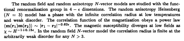 The random field and random anisotropy iV-vector models are studied with the functional renormalization group in 4 — e dimensions. The random anisotropy Heisenberg (N — 3) model has a phase with the infinite correlation radius at low temperatures and weak disorder. The correlation function of the magnetization obeys a power law (m(ri)m(r2)> ~ |ri — гг!"062'The magnetic susceptibility diverges at low fields as χ ~ jj-i+o.15« _ in the random field N-vector model the correlation radius is finite at the arbitrarily weak disorder for any N > 3.