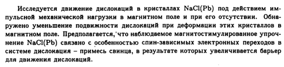 Магнитостимулированное упрочнение кристаллов NaCl (Pb)