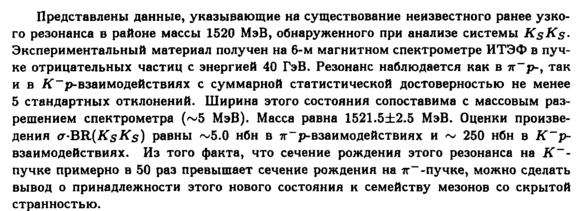 Обнаружение узкого резонансного состояния системы KSKS при массе 1520 МэВ