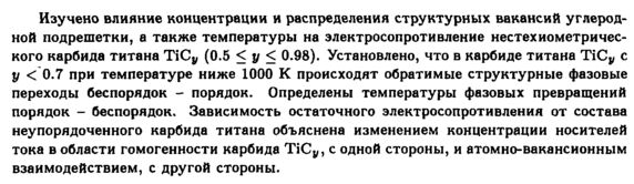 Зависимость электросопротивления нестехиометрического карбида титана TiCy от концентрации и распределения углеродных вакансий