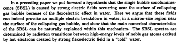 In a preceding paper we put forward a hypothesis that the single bubble sonolumines-cence (SBSL) is caused by strong electric fields occurring near the surface of collapsing gas bubble because of the flexoelectric effect in water. Here we argue that these fields can indeed provoke an multiple electric breakdown in water, in a micron-size region near the surface of the collapsing gas bubble, and show that the main numerical characteristics of the SBSL can be naturally explained within this mechanism. The SBSL spectra are determined by radiation transitions between high-energy levels of noble gas atoms excited by hot electrons created by strong flexoelectric field in a "cold" water.
