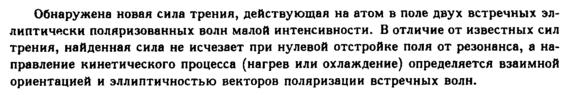 Обнаружена новая сила трения, действующая на атом в поле двух встречных эллиптически поляризованных волн малой интенсивности. В отличие от известных сил трения, найденная сила не исчезает при нулевой отстройке поля от резонанса, а направление кинетического процесса (нагрев или охлаждение) определяется взаимной ориентацией и эллиптичностью векторов поляризации встречных волн.