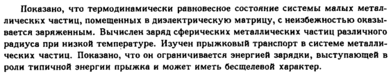 Показано, что термодинамически равновесное состояние системы малых металлических частиц, помещенных в диэлектрическую матрицу, с неизбежностью оказывается заряженным. Вычислен заряд сферических металлических частиц различного радиуса при низкой температуре. Изучен прыжковый транспорт в системе металлических частиц. Показано, что он ограничивается энергией зарядки, выступающей в роли типичной энергии прыжка и может иметь бесщелевой характер.