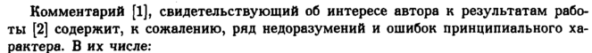 Комментарий [1], свидетельствующий об интересе автора к результатам работы [2] содержит, к сожалению, ряд недоразумений и ошибок принципиального характера. В их числе: