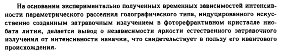 На основании экспериментально полученных временных зависимостей интенсивности параметрического рассеяния голографического типа, индуцированного искусственно созданным затравочным излучением в фоторефрактивном кристалле нио-бата лития, делается вывод о независимости яркости естественного затравочного излучения от интенсивности накачки, что свидетельствует в пользу его квантового происхождения.