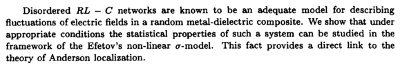 Disordered RL С networks are known to be an adequate model for describing fluctuations of electric fields in a random metal-dielectric composite. We show that under appropriate conditions the statistical properties of such a system can be studied in the framework of the Efetov's non-linear σ-model. This fact provides a direct link to the theory of Anderson localization.