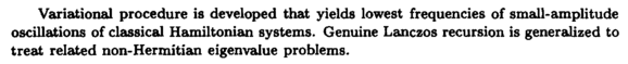 Variational procedure is developed that yields lowest frequencies of small-amplitude oscillations of classical Hamiltonian systems. Genuine Lanczos recursion is generalized to treat related non-Hermitian eigenvalue problems.