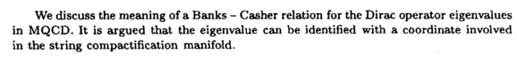 We discuss the meaning of a Banks Casher relation for the Dirac operator eigenvalues in MQCD. It is argued that the eigenvalue can be identified with a coordinate involved in the string compactification manifold.
