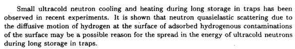 Small ultracold neutron cooling and heating during long storage in traps has been observed in recent experiments. It is shown that neutron quasielastic scattering due to the diffusive motion of hydrogen at the surface of adsorbed hydrogenous contaminations of the surface may be a possible reason for the spread in the energy of ultracold neutrons during long storage in traps.