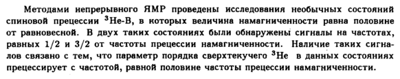 Методами непрерывного ЯМР проведены исследования необычных состояний спиновой прецессии 3Не-В, в которых величина намагниченности равна половине от равновесной. В двух таких состояниях были обнаружены сигналы на частотах, равных 1/2 и 3/2 от частоты прецессии намагниченности. Наличие таких сигналов связано с тем, что параметр порядка сверхтекучего 3Не в данных состояниях прецессирует с частотой, равной половине частоты прецессии намагниченности.