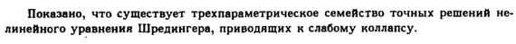 Показано, что существует трехпараметрическое семейство точных решений нелинейного уравнения Шредингера, приводящих к слабому коллапсу.