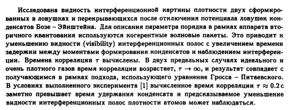 Интерференция двух конденсатов Бозе - Эйнштейна