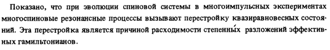 Показано, что при эволюции спиновой системы в много импульсных экспериментах многоспиновые резонансные процессы вызывают перестройку квазиравновесных состояний. Эта перестройка является причиной расходимости степенных разложений эффективных гамильтонианов.