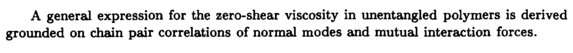 A general expression for the zero-shear viscosity in unentangled polymers is derived grounded on chain pair correlations of normal modes and mutual interaction forces.