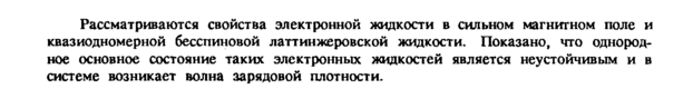 Рассматриваются свойства электронной жидкости в сильном магнитном поле и квазиодномерной бесспиновой латтинжеровской жидкости. Показано, что однородное основное состояние таких электронных жидкостей является неустойчивым и в системе возникает волна зарядовой плотности.