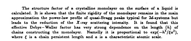 The structure factor of a crystalline monolayer on the surface of a liquid is calculated. It is shown that the finite rigidity of the monolayer remains in the main approximation the power-law profile of quasi-Bragg peaks typical for 2d-systems but leads to the reduction of the X-ray scattering intensity. It is found that this effective Debye-WaUer factor has very strong dependence on the length (h) of chains constructing the monolayer. Namelly it is proportional to exp(—H3/£a2), where £ is a chain persistent length and α is a characteristic atomic scale.