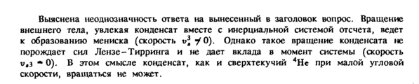 Выяснена неоднозначность ответа на вынесенный в заголовок вопрос. Вращение внешнего тела, увлекая конденсат вместе с инерциальной системой отсчета, ведет к образованию мениска (скорость v\ уО). Однако такое вращение конденсата не порождает сил Лензе Тирринга и не дает вклада в момент системы (скорость v,3 * 0). В этом смысле конденсат, как и сверхтекучий 4Не при малой угловой скорости, вращаться не может.