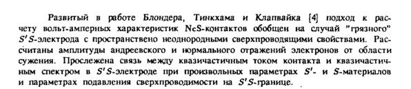 Развитый в работе Блондера, Тинкхама и Клапвайка [4] подход к расчету вольт-амперных характеристик NcS-контактов обобщен на случай "грязного" 5'5-электрода с пространствено неоднородными сверхпроводящими свойствами. Рассчитаны амплитуды андреевского и нормального отражений электронов от области сужения. Прослежена связь между квазичастичным током контакта и квазичастичным спектром в S'S-электроде при произвольных параметрах S'и S-материалов и параметрах подавления сверхпроводимости на S'S-границе