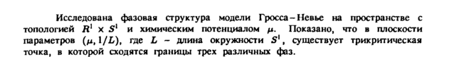 Исследована фазовая структура модели Гросса -Невье на пространстве с топологией Л1 χ S1 и химическим потенциалом μ. Показано, что в плоскости параметров (μ,Ι/L), где L длина окружности S1, существует трикритическая точка, в которой сходятся границы трех различных фаз.