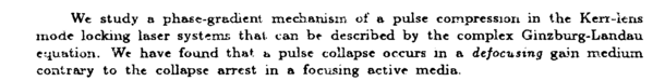 Wt study a phase-gradient mechanism of a pulse compression in the Ken-lens mode locking laser systems that can be described by the complex Ginzburg-Landau equation. We have found that ь pulse collapse occurs m a defocusmg gain medium contrary to the collapse arrest in a focusing active media.