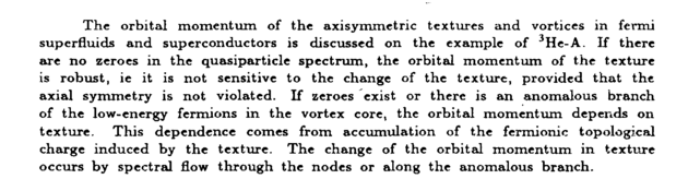 The orbital momentum of the axisymmetric textures and vortices in fermi superfluids and superconductors is discussed on the example of 3He-A. If there are no zeroes in the quasiparticle spectrum, the orbital momentum of the texture is robust, ie it is not sensitive to the change of the texture, provided that the axial symmetry is not violated. If zeroes exist or there is an anomalous branch of the low-energy fermions in the vortex core, the orbital momentum depends on texture. This dependence comes from accumulation of the fermionic topological charge induced by the texture. The change of the orbital momentum in texture occurs by spectral flow through the nodes or along the anomalous branch.
