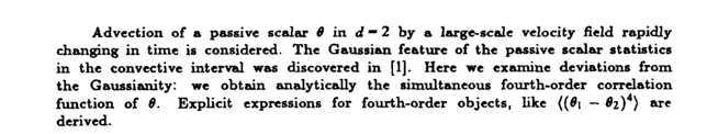 Advection of a passive scalar θ in d — 2 by a large-scale velocity field rapidly changing in time is considered. The Gaussian feature of the passive scalar statistics in the convective interval was discovered in [1]. Here we examine deviations from the Gaussianity: we obtain analytically the simultaneous fourth-order correlation function of 0. Explicit expressions for fourth-order objects, like {(0i — 0г)4) derived.