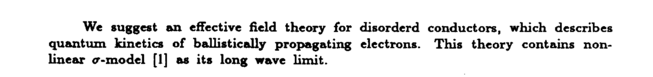 We suggest an effective field theory for disorderd conductors, which describes quantum kinetics of ballistically propagating electrons. This theory contains nonlinear σ-model [1] as its long wave limit.