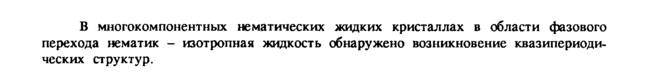 В многокомпонентных нематических жидких кристаллах в области фазового перехода нематик изотропная жидкость обнаружено возникновение квазипериодических структур.