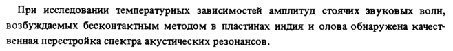 При исследовании температурных зависимостей амплитуд стоячих звуковых волн, возбуждаемых бесконтактным методом в пластинах индия и олова обнаружена качественная перестройка спектра акустических резонансов.