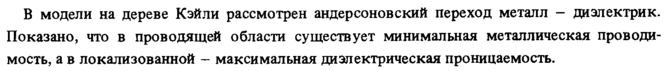 В модели на дереве Кэйли рассмотрен андерооновский переход металл диэлектрик. Показано, что в проводящей области существует минимальная металлическая проводимость, а в локализованной максимальная диэлектрическая проницаемость.