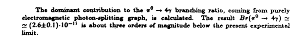 The dominant contribution to the tr —* Ay branching ratio, coming from purely electromagnetic photon-splitting graph, is calculated. The result Br(ir° —· 47) ~ Cz (2.Ы0Л )-10*"lf is about three orders of magnitude below the present experimental limit.