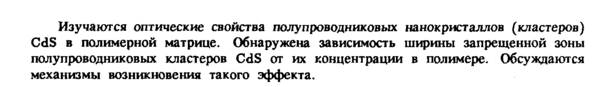 Оптические свойства полупроводниковых кластеров в полимерной матрице