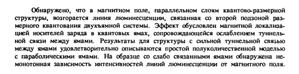 Обнаружено, что в магнитном поле, параллельном слоям квантово-размерной структуры, возгорается линия люминесценции, связанная со второй подзоной размерного квантования двухъямной системы. Эффект обусловлен магнитной локализацией носителей заряда в квантовых ямах, сопровождающейся ослаблением туннельной связи между ямами. Результаты для структуры с сильной туннельной связью между ямами удовлетворительно описываются простой полуколичественной моделью с параболическими ямами. На образце со слабо связанными ямами обнаружена немонотонная зависимость интенсивностей линий люминесценции от магнитного поля.