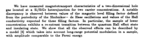 We have measured magnet ©transport characteristics of a two-dimensional hole gas located at a Si/SiGe heterojunction for two carrier concentrations. A notable discrepancy is observed between values of the magnetic level filling factor denned from the periodicity of the Shubnikovde Haas oscillations and values of the Hall conductivity expected for these filling factors. In particular, the sample of lower concentration exhibits a re-entrant transition between the quantum Hall effect state and insulating state. We show that all the observed effects can be described by a model [6] which takes into account long-range potential modulation in a sample, with amplitude comparable to the Fermi energy.